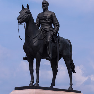 घोड़ों पर बैठे योद्धा वाली स्थापित मूर्तियों के संकेत