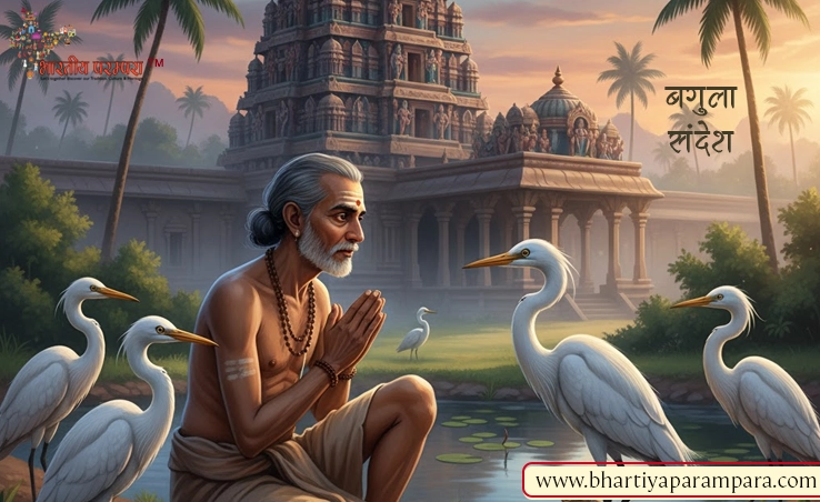 उनकी एकमात्र संपत्ति थी उनकी फटी हुई धोती और उससे भी बदहाल का एक तौलिया। वे अपनी दरिद्रता से पीड़ित होकर अपने यहां से निकलकर पांड्य राज्य जा पहुंचे। उनका विचार था कि वहां के राजा या जमींदार का गुणगान कर कुछ सम्मान की निधि पाएंगे और फिर अपने यहां लौटेंगे। इसी इरादे से वे निकले पर तब सर्दी का मौसम था। घनघोर वर्षा के बाद ठंडी हवा बहने लगी। अतः वे एक दीवार की आड़ में जा बैठे। सर उठाकर देखा कि कहीं दुबारा बारिश न हो। पर उन्हें एक बगुले की जोडी उड़ती दिखाई दी। उन्हें देखते ही उन्हें अपनी पत्नी की याद आई। घर से निकल आए दो दिन हो गए। वह काफी चिंतित रहेगी। उसे कोई संदेश भेजना आवश्यक है। पर कैसे भेजें? तब उनके मन में यह विचार आया कि इन बगुलों के माध्यम से ही संदेश भेज दूं। अपनी भूख और प्यास में भी उनकी काव्य सृजन शक्ति पूरी तन्मयता में थी और वे उन बगुलों को संबोधित करते हुए संदेश देते हैं, जिसका सारांश इस प्रकार है: